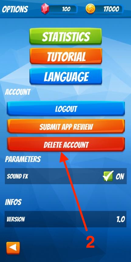 3.) Press Delete Account Button